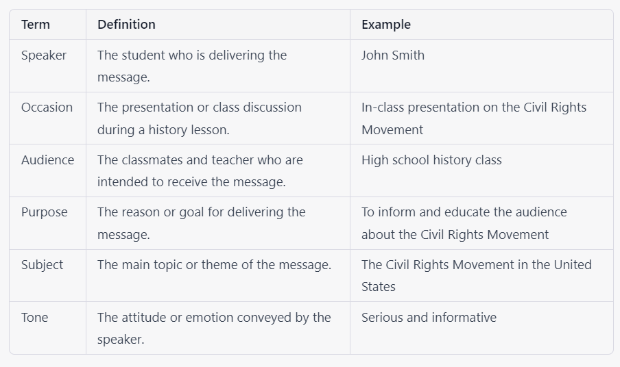 Example prompt: “Using the SOAPSTone method, analyze the tone of Martin Luther King Jr.’s ‘I Have a Dream’ speech and explain how it contributes to the overall purpose of the speech.” – OR:
